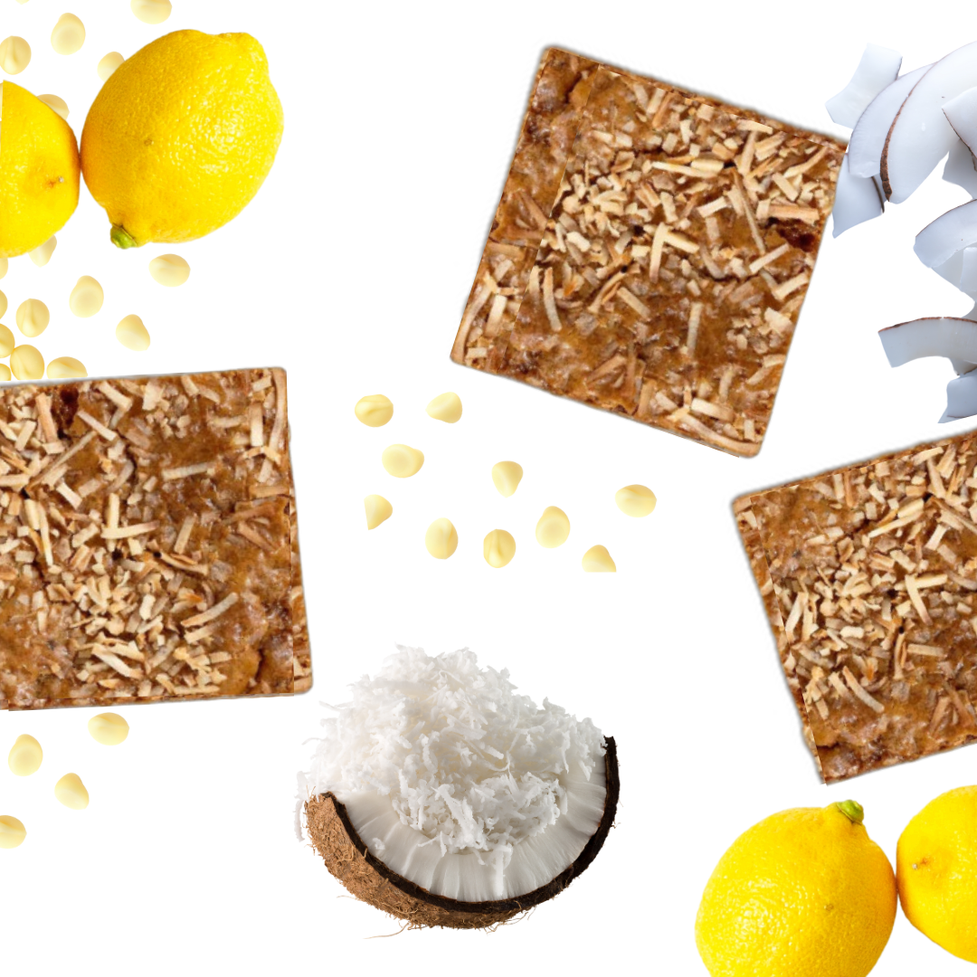 These white chocolate brownies are bright, zesty, and irresistibly creamy, making them a tropical delight. Made with white couverture chocolate, real lemon zest, organic coconut, and a touch of Himalayan rock salt, these brownie squares are perfectly balanced with a hint of sweetness and citrus.