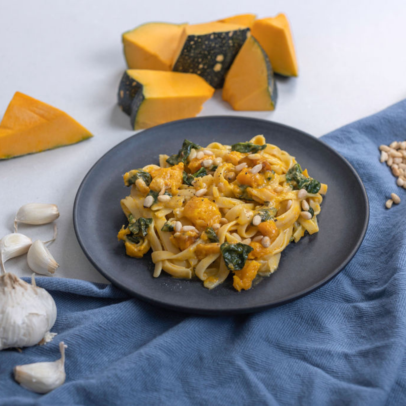 Pumpkin Fettuccine with Pine Nuts