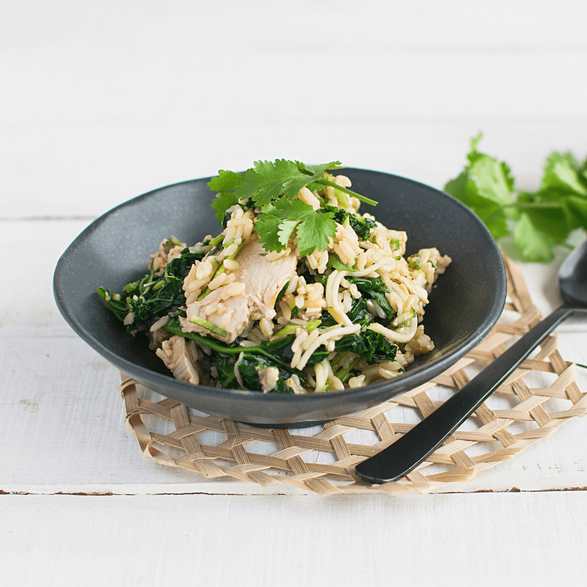 Chicken Breast (38%), Water, Zucchini (14%), Brown Rice (10%), Kale (7%), Lemon Juice, Coriander, Tamari Gluten Free Soy Sauce (Whole soybeans, water, sea salt, alcohol), Ginger, Cornflour, Olive Oil, Salt, Pepper.