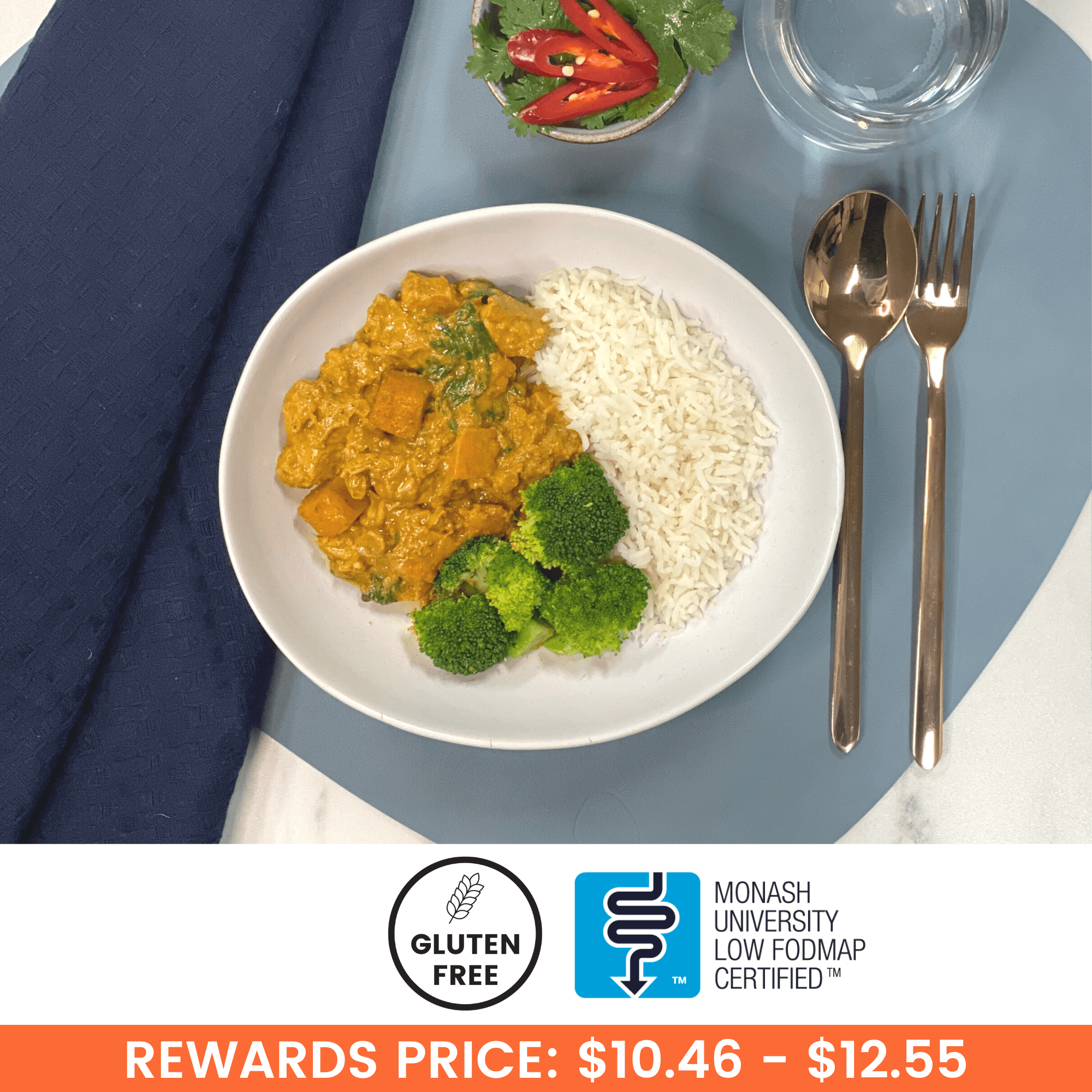 We may just have created the perfect union of healthy and delicious! The hero of this meal is a rich coconut and tomato curry, combined with velvety sweet potato and a generous serve of tender chicken breast. The curry is served on a bed of basmati rice and finished with toasty roasted broccoli (because we know you like greens for balance).