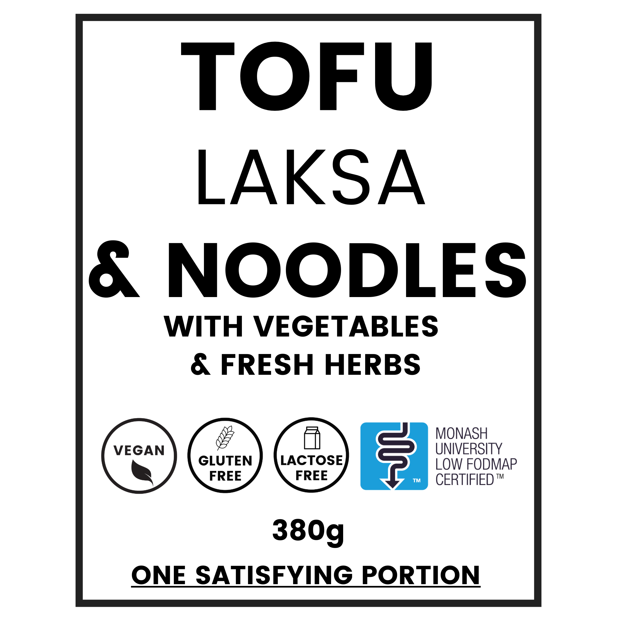 Water, Firm Tofu (25%)(Soybeans, Mineral Salts (509,511), Water), Eggplant (13%), Thick Rice Vermicelli Noodles (11%)(Rice Flour, Water, Salt), Bok Choy (7%), Carrot (6%), Coconut Milk Powder (Organic Coconut Nuts, Maltodextrin), Red Capsicum, Tamari Gluten Free Soy Sauce (Whole Soybeans, Water, Sea Salt, Alcohol), Lemongrass, Ginger, Garlic Olive Oil (No Garlic flesh), Salt, Spring Onions (Green Portion Only), Coriander (0.4%), Vietnamese Mint (0.4%), Tamarind Concentrate, Salt, Cornflour (Cornflour Maize), Brown Sugar, Turmeric Powder, Chilli Flakes.